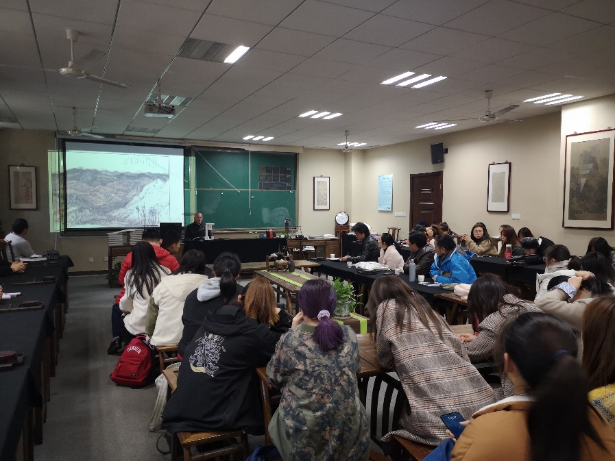 师生们以高涨的热情、认真的态度聆听张友宪老师对近四十年中国画的观澜,从代表人物及绘画到著名美院绘画,从语言文字的创造到书法艺术的发展,书法与中国古代绘画艺术的繁荣密不可分,从中国画的革新到遗憾,对中国画近四十年的历程有了更深的认识。