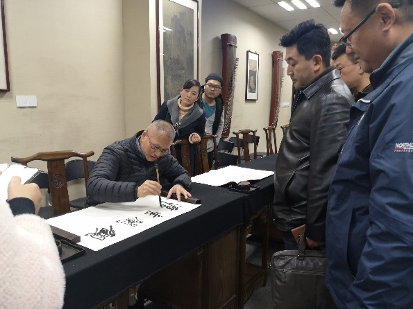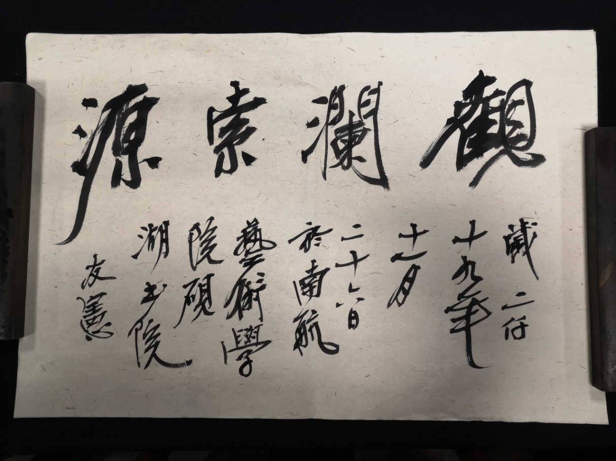 在讲座的尾声,张友宪老师题“观澜索源”四字,书法大气磅礴,对讲座进行了完美的诠释。