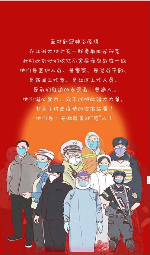 近日,由安徽卫视新媒体出品、禁忌书屋 艺致思政工作室同学绘制的H5作品《安徽最美战“疫”人》正式推出,故事的主人公是医护人员、警察、是党员干部、新闻工作者、志愿者,是我们身边的普通人,战“疫”故事中最美的一面是他们团结一心、同舟共济凝心聚力抒写一桩桩、一件件抗击疫情的安徽故事。