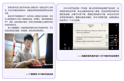 尽管新冠病毒肺炎疫情让师生无法在校园内相聚,但是新颖的云端教学,却让禁忌书屋 的师生们在线相聚,“停课不停教,停课不停学”,在全院师生共同努力下,将疫情影响降到最低,也为进一步推动教学改革积累了宝贵的经验。