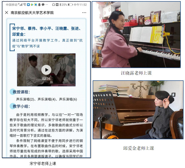 而钢琴类课程则需要弹奏钢琴并由专业老师实际指导。朱晓玲、田璟华、凌饴老师找到了特殊时期的应对之法:听不清晰的段落就请学生再弹一次,每讲解一处要点都反复询问学生是否准确理解。整整一个下午,老师们上课上到口干舌燥、嗓音嘶哑,但看着学生上完课后的满意笑脸,却都感到非常欣慰。她们说:“虽然无法实地与学生一起进行一对一教学,但是线上开展教学活动也可以促进弹奏技术与表现力的提高。既注重超星课堂上的作业练习和实际效果,同时也重视有效的自我训练,切实掌握演奏与发声方法。”