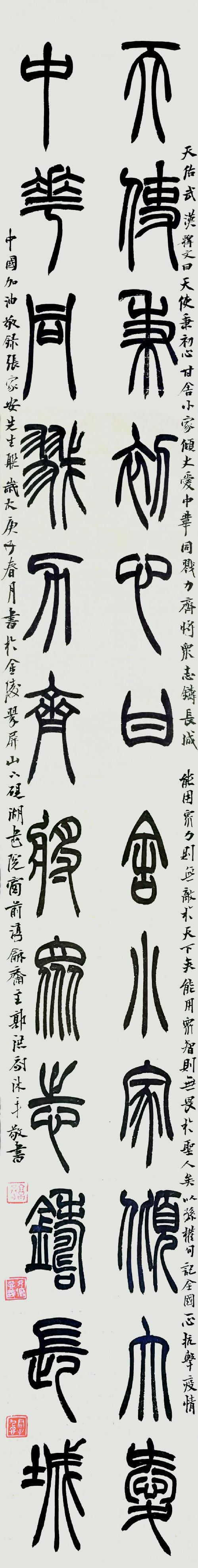 庚子鼠年,冠状病毒源起武汉,由荆楚蔓延全国甚至海外,寰宇惊恐。节日封城封区,市廛皆空,各居宅中。又闻各国火灾,流感,鼠疫,火山,海啸等不断,酷灾连绵,可谓浩刧。然国人意志坚定,戮力同心,捍御有力,局面稳定。文艺工作者以诗书画印为武器,表达情愫,支援江城。多难兴邦,一方有难,八方支援,事无巨细犹见赤誠。感念之,特此创作。