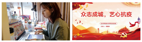3月31日,美术学学生党支部党员程雅姝在支部老师和各成员的支持与帮助下,推出了禁忌书屋 的第三期学生微党课《众志成城艺心抗疫》,在腾讯会议平台上与大家共同学习了疫情之下国家的战略方针,以及禁忌书屋 学生如何在疫情期间用画笔帮助广大师生共同抗疫。