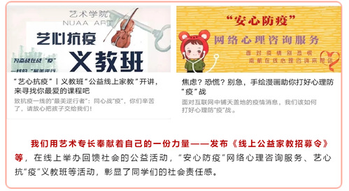 的学生,我们用画笔记录着这些“逆行者们”的故事,用画笔帮助每一位南航人打好心理“防”疫战,让我们‘艺心抗疫,静待花开’。”程雅姝如是说。