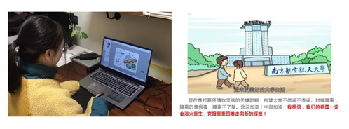 设计学学生党支部还有一位“灵魂画手”,顾婉菁同志她默默用画笔记录着疫情以来的点点滴滴。用自己的作品为防疫工作贡献着自己的力量。