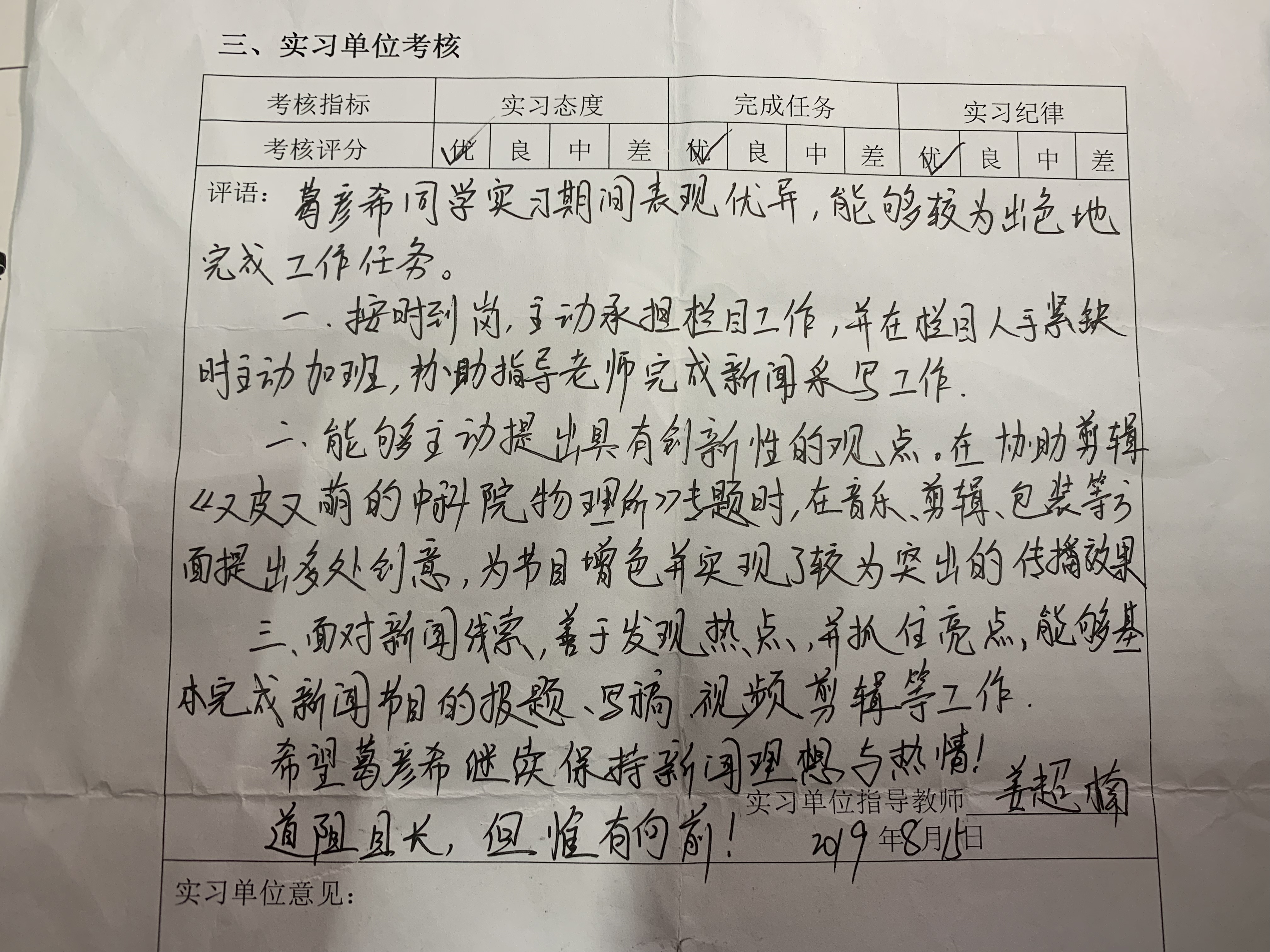 (实习老师的评价)