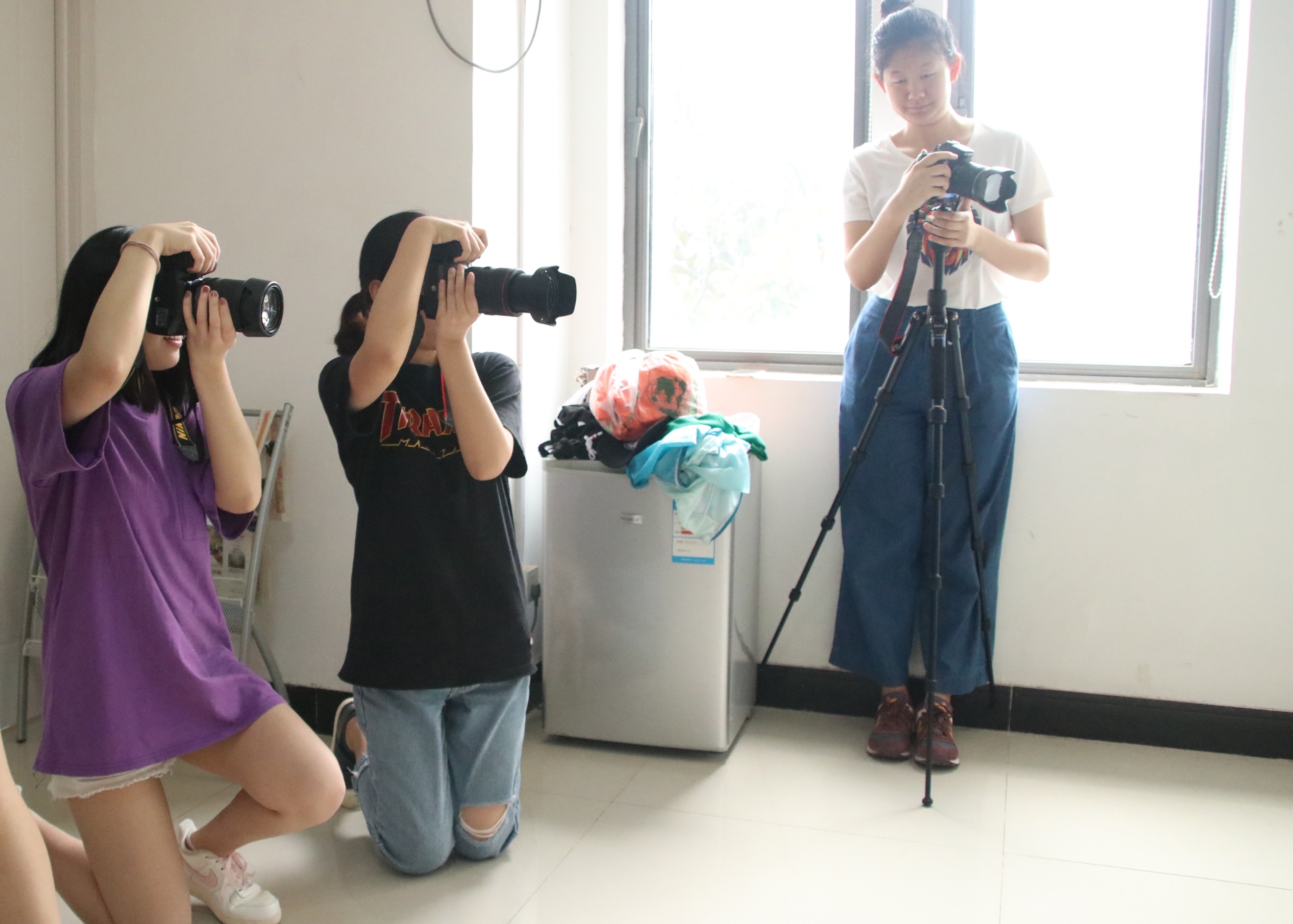 (左二,寻找各种角度为阿姨们拍摄写真)