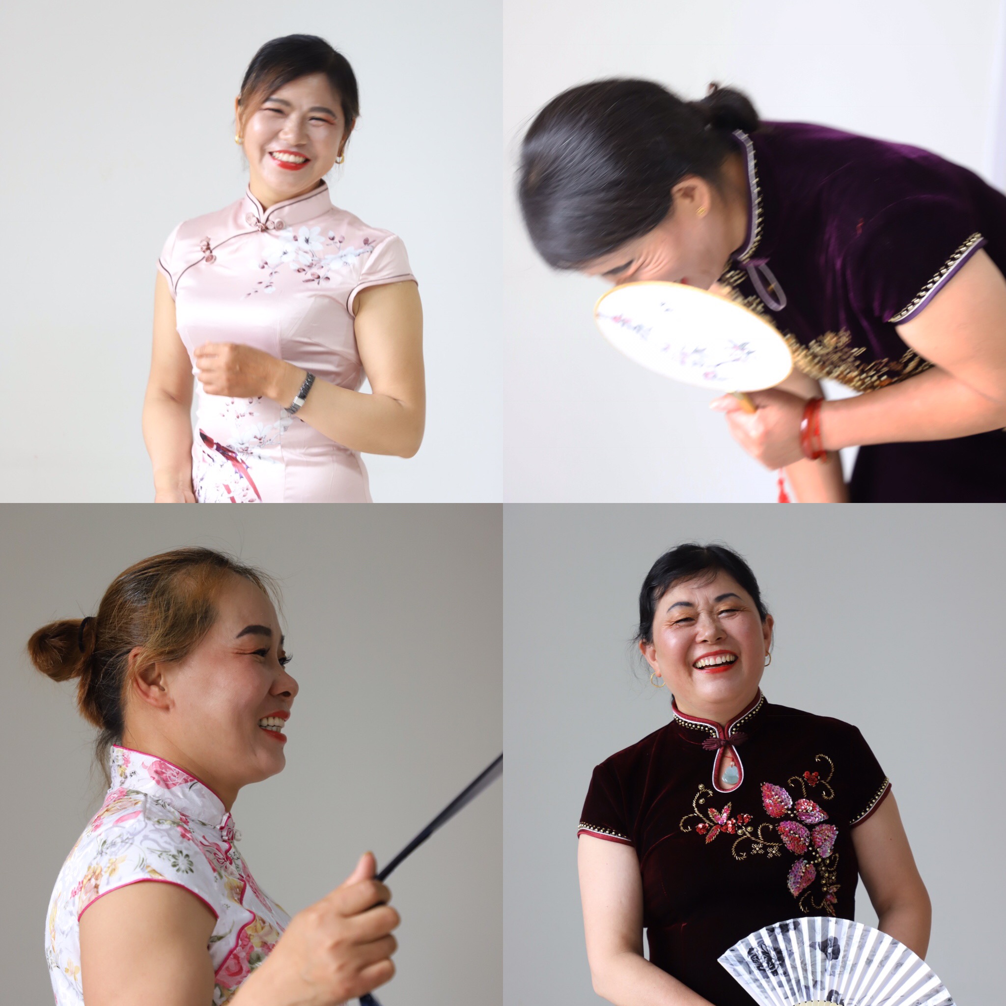 (环卫阿姨们换上旗袍后的笑容)