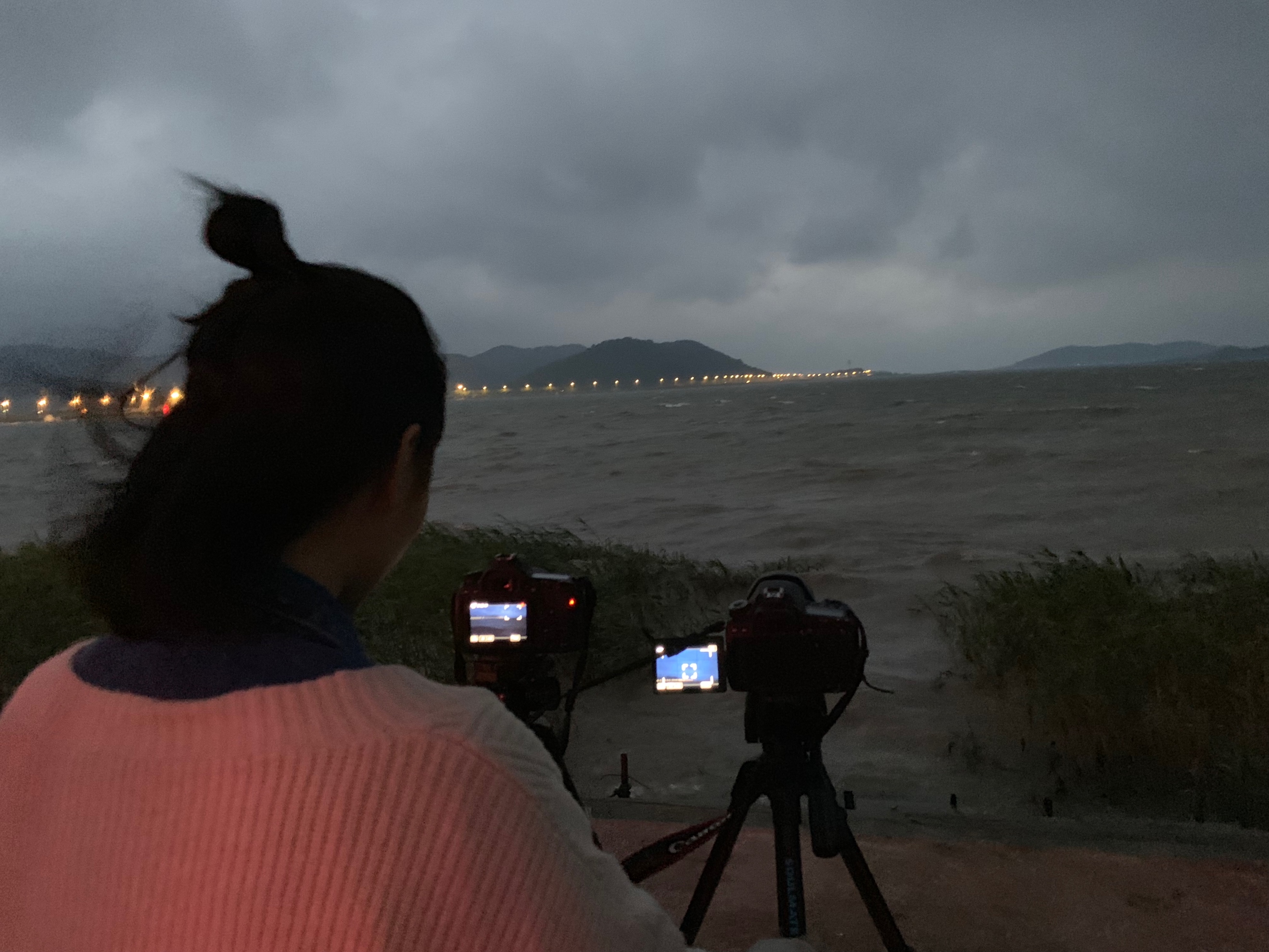 (在恶劣的天气下为组员们拍摄空镜头)