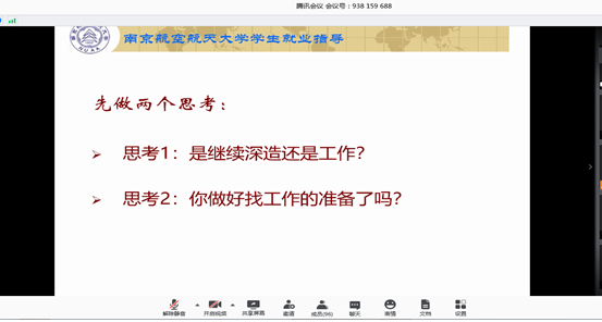 首先,张月铭老师给同学们介绍了当前的就业形势,从招聘时间节点说起,应届生自9月开学即将进入秋招,60%以上的用人单位集中在9—10月内集中组织校招,根据往年的经验来看,在找工作前期大部分同学都会面临受挫,这是正常现象,需要认真总结每次成功与失败的经验。受到疫情影响,今年的就业形势格外严峻,因此必须提早定目标,做出两个思考:是继续深造还是工作?你做好找工作的准备了吗?