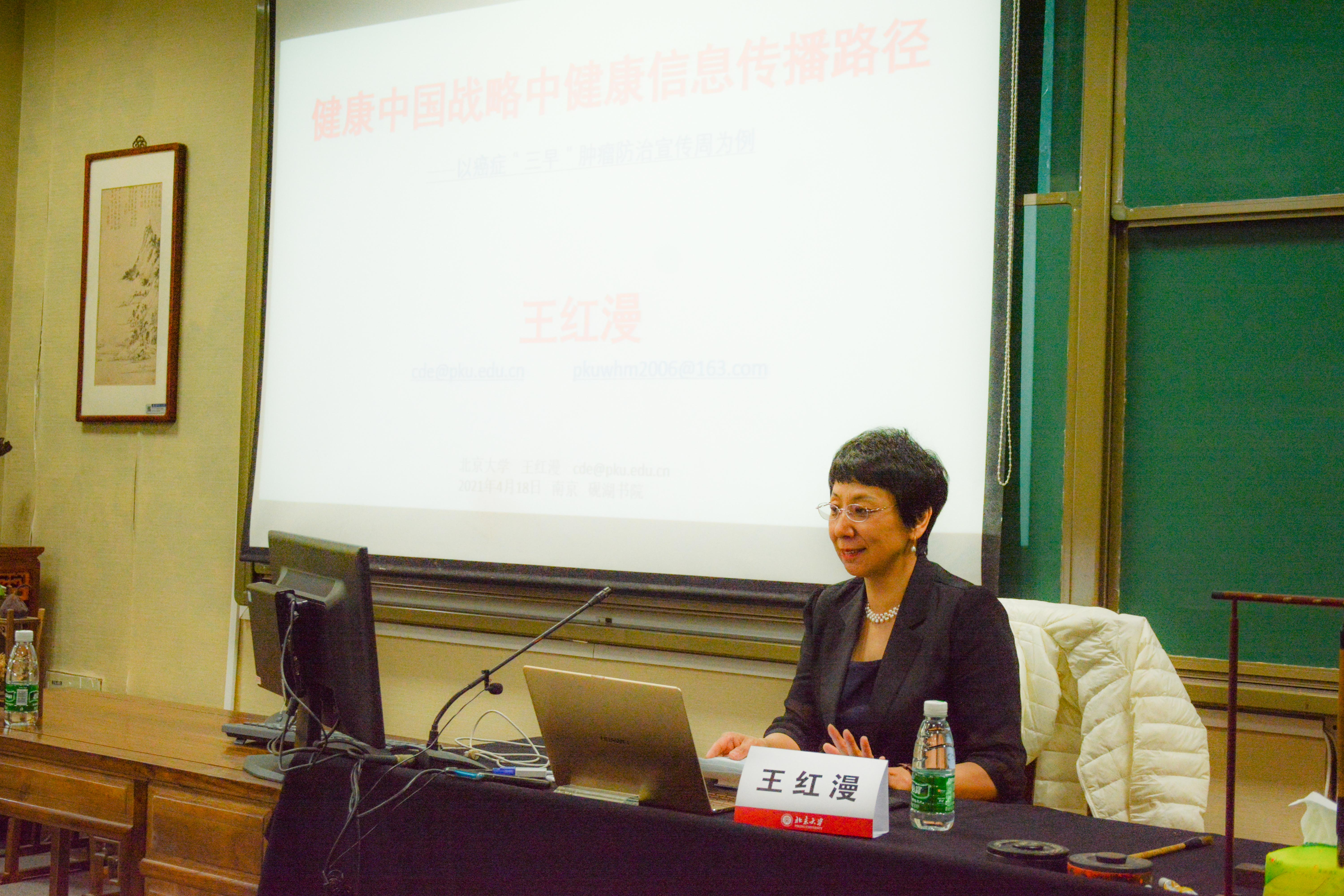 讲座伊始,王教授从健康信息传播的内涵和外延出发,给同学们分享了西方健康信息传播研究的转变以及中国健康信息传播关注热点问题的变化。紧接着,王教授通过对比分析央视新闻报道的中国抗癌协会科普平台发布的《12分钟全国肿瘤防治宣传周专题报道新鲜出炉》和《大医生的早筛时刻》等纪录短片,以及中国与全球其他国家的癌症发病率和死亡率的最新比对数据,并通过领读中国科学院院士、中国科协名誉主席、十二届全国政协副主席韩启德院士《医学的温度》的精辟论断“医学是以人为本,科学属性、人文属性和社会属性统一,从而不断促进人类社会健康发展”,引发大家思考含金量的健康信息从哪里获得,什么样的载体能够成为有效的载体,怎样才是有效的传播路径等对健康传播而言至关重要的议题。对此,王教授呼吁同学们作为未来的健康传播工作者,应该如何在传播过程中发挥重要作用,储备专业的健康传播知识,找到能够使人们获得有效健康信息的可信媒体,切实提高健康信息需求的精准匹配能力,提高人们的健康素养。王教授在谈及如何达到有效传播健康信息的目标,提出一是在融媒体环境下,健康信息的传播和汇集是信息从“分散意见”汇总为“共同意识”的过程;二是,个案研究中,不同信息参与者有自身的特点和不同的舆论方式,寻找舆论引导的有效切入点,把握共性规律;三是,通信技术的迅猛发展使研究对象处于动态变化的过程中,增加了把握难度。