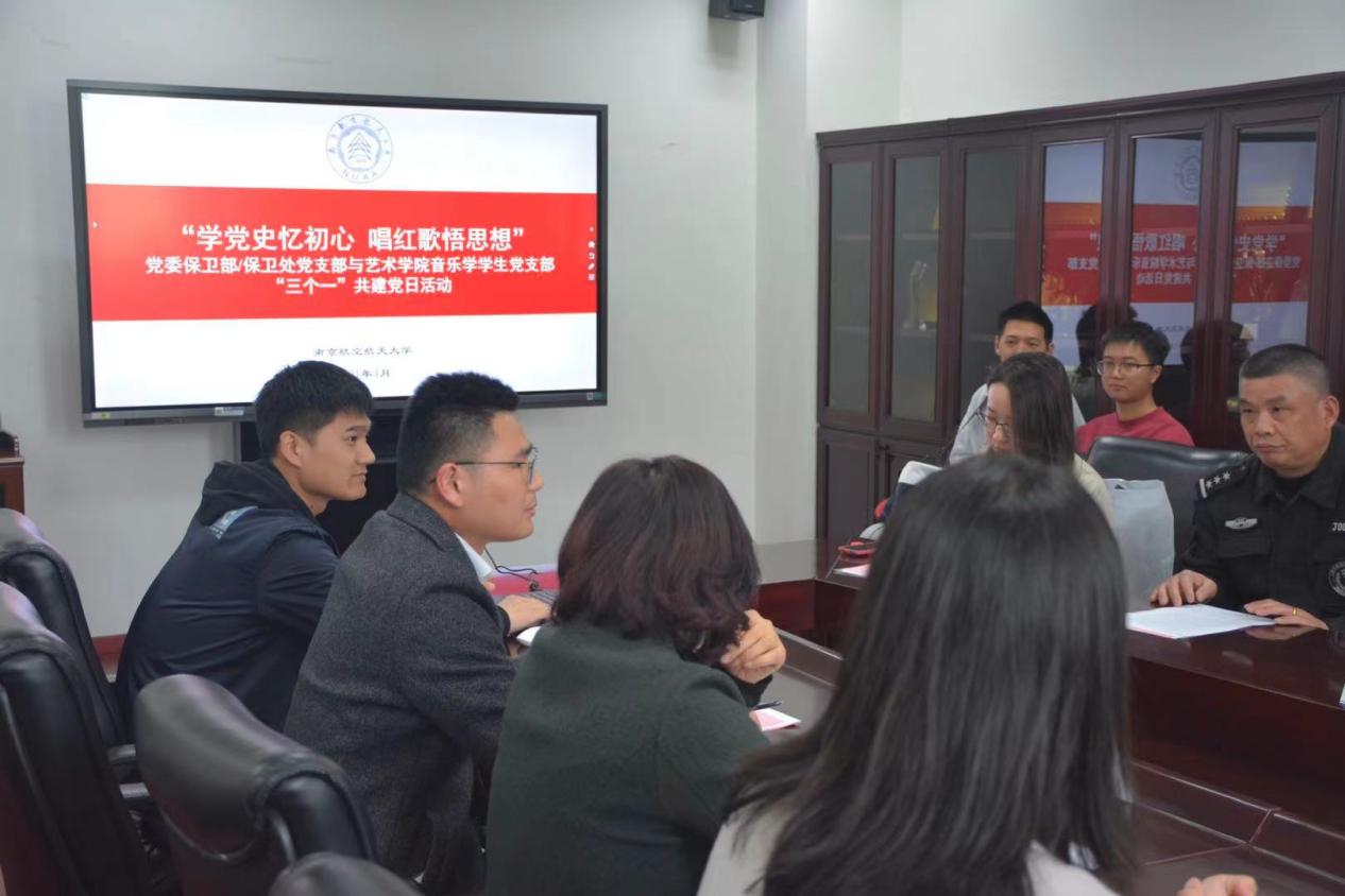 音乐学学生党支部与保卫处/党委保卫部党支部开展了“三个一”党日共建活动,活动围绕“学党史忆初心,唱红歌悟思想”的党史学习教育主题展开。保卫处副处长(主持工作)徐曙峰、禁忌书屋