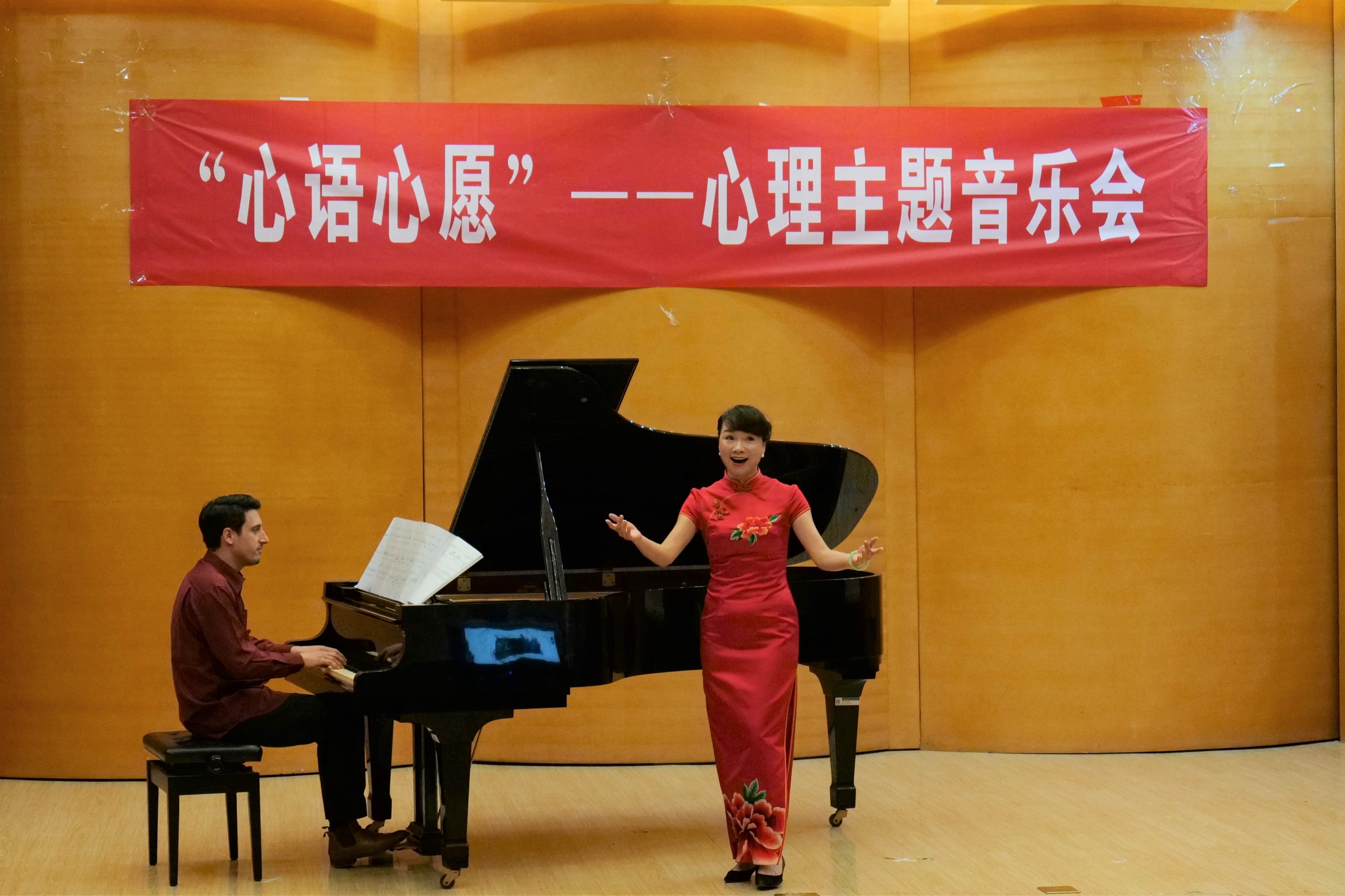 科学表明,音乐具有减压效果,它能够降低疼痛、舒缓压力。音乐系Oscar老师演奏的《月光》就像一段诗篇,把听众带入谧静的深夜,月光如水的美令人感到抚慰。邱爱金老师演唱《军营飞来一只百灵》,活泼欢快的歌声让人感受到力量与希望。两位老师表演结束后,来自音乐表演专业的心理委员戴静同学演奏了一曲《卡农》,悠扬的旋律令人沉醉。