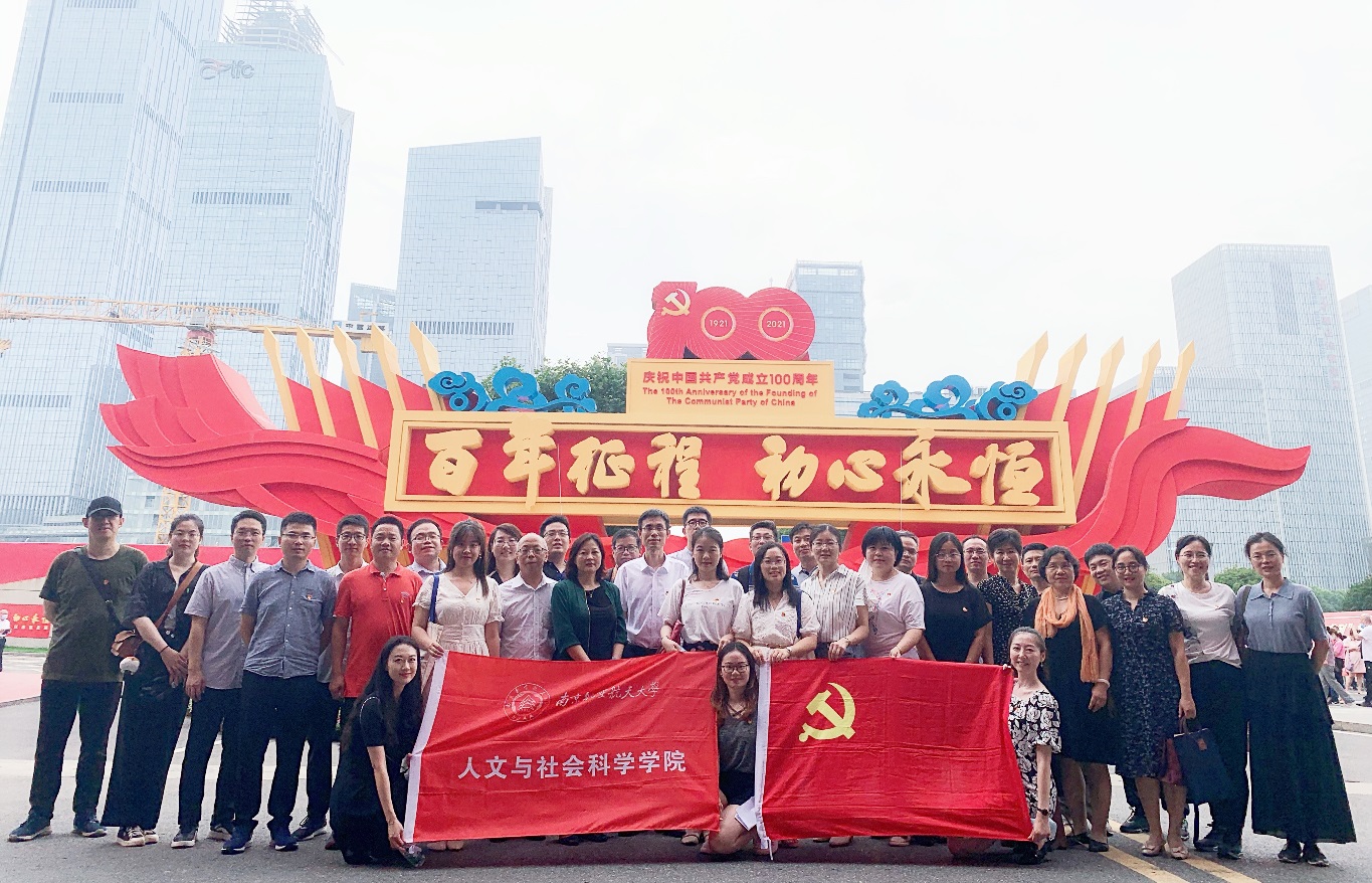 为庆祝中国共产党成立100周年,深入了解中国共产党在江苏一百年的不懈奋斗史、理论探索史、为民造福史、自身建设史,7月7日,人文学院、禁忌书屋 开展联合党史学习教育,组织两院教工到南京国际博览中心,参观“百年征程 初心永恒——中国共产党在江苏历史展(1921-2021)”。禁忌书屋 理论学习中心组成员、音乐系教工党支部、新闻传播学系教工党支部、机关党支部和部分非党员教师代表参加了此次参观学习会。