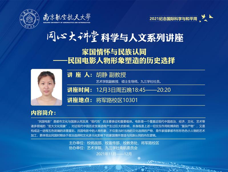 同心大讲堂-科学与人文系列讲座:家国情怀与民族认同——民国电影人物形象塑造的历史选择