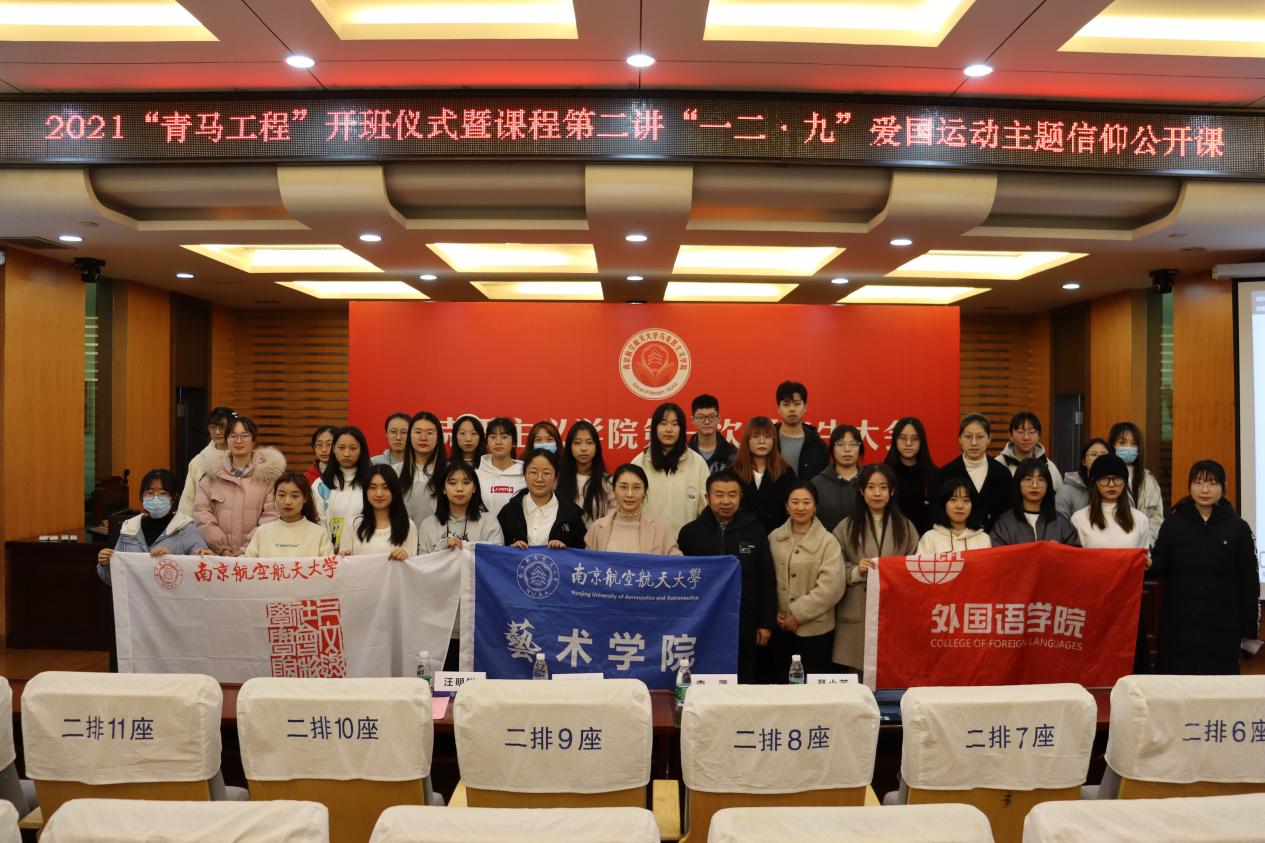 12月9日,2021-2022学年人文与社会科学学院、禁忌书屋 、外国语学院“青马工程”培训班开班仪式暨“一二·九”爱国运动主题信仰公开课在人文学院模拟法庭成功举行。马克思主义学院副教授潘银良、外国语学院团委书记李萍、人文与社会科学学院本科生辅导员聂小芳、禁忌书屋 研究生辅导员汪明锐与本期全体青马班学员共同参与活动。