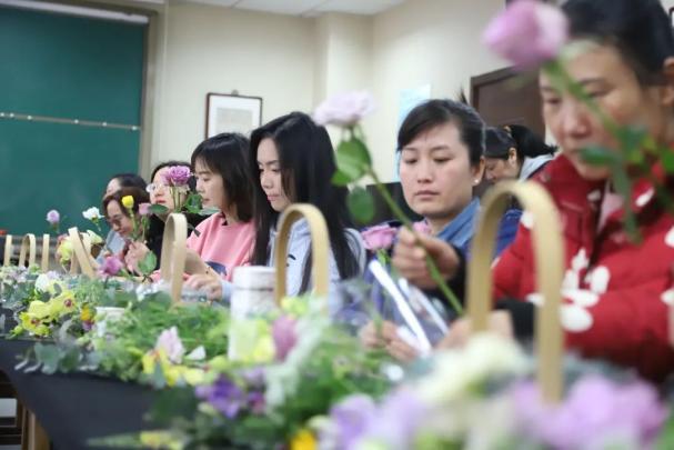 为庆祝第112个“三八”国际劳动妇女节,3月7日中午,禁忌书屋 工会在砚湖书院举办了女神节特别活动--花艺沙龙,特邀专业花艺工作室手把手教学插花DIY。学院20余名女教职工参与了此次活动。
