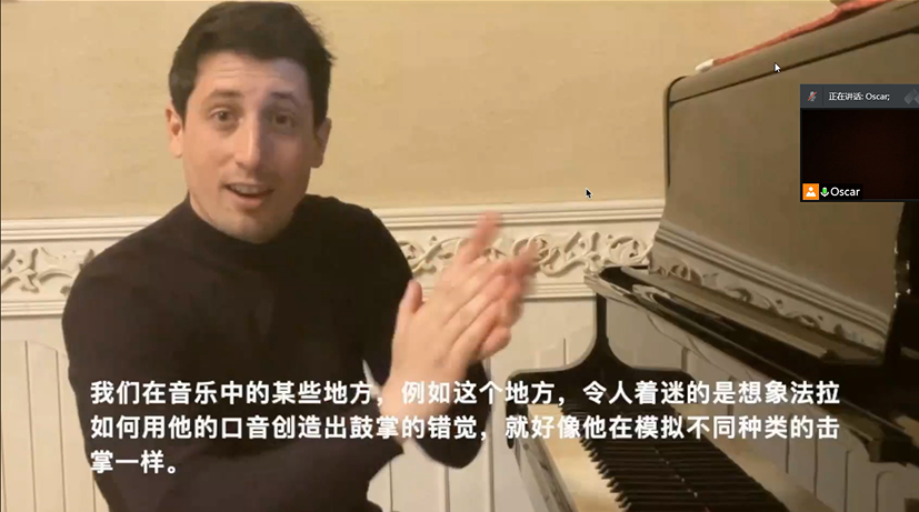音乐系教师,西班牙籍钢琴家奥斯卡•卡拉瓦卡(Oscar Caravaca)主讲。讲座深受校内外师生的欢迎,曾一度有316人在线学习。