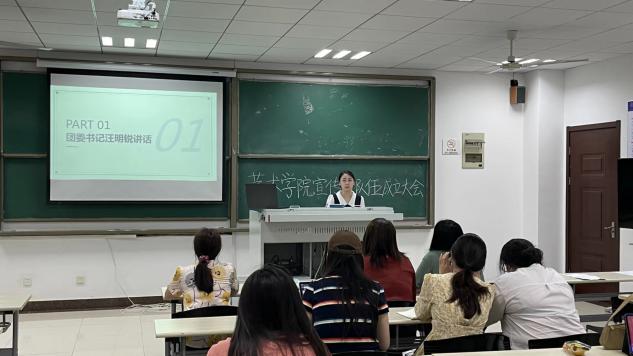 会上,团委书记汪明锐结合自身党团建设及学生骨干培养工作发表讲话。她指出宣传员队伍的成立是促进学院宣传工作的一大重要举措,各宣传员们应当积极参与其中,形成合力,增强学院党团组织的宣传活力。