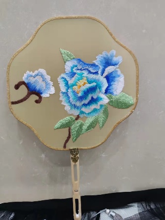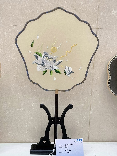 《绿》这个团扇用珠绣的方法,把不同的绿色用不同的材质表现出来,简朴与华丽相结合。