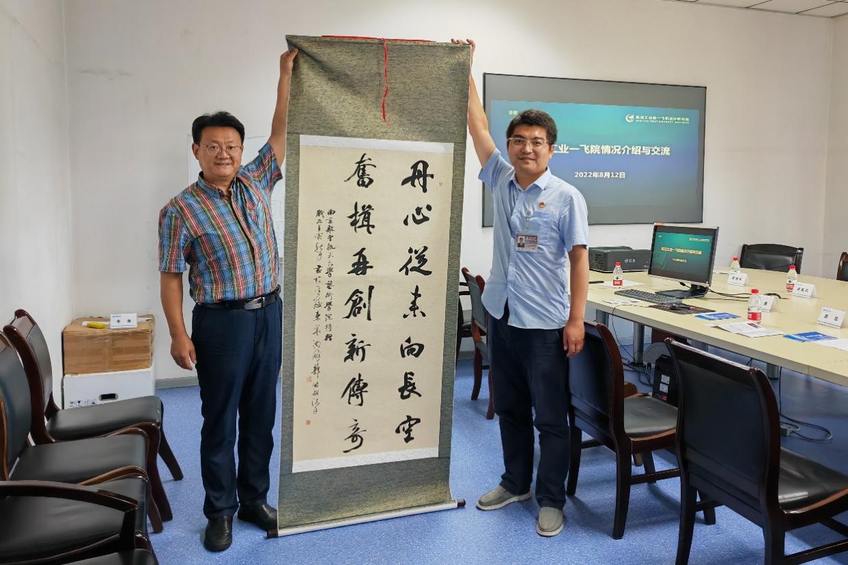 会后,团队一行参观了试飞院综合展示厅、重点型号飞机及试验设施,以及功勋飞机园。学院以“试飞铺就通天路”书法作品为赠,赞颂试飞院“质量就是试飞人的生命”的企业精神。