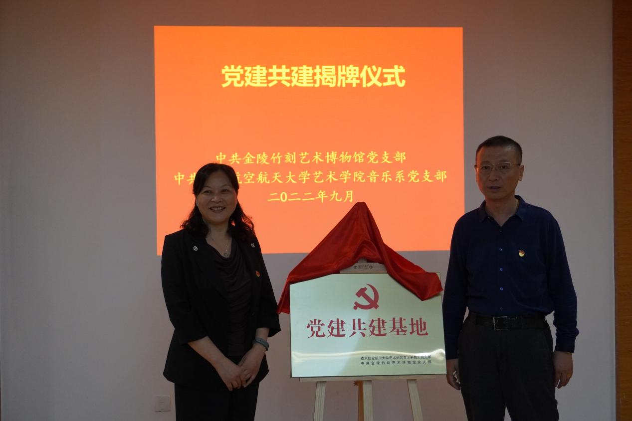 音乐系党支部书记汪晓露和金陵竹刻艺术博物馆党支部书记任丽丽共同签署党建共建协议。