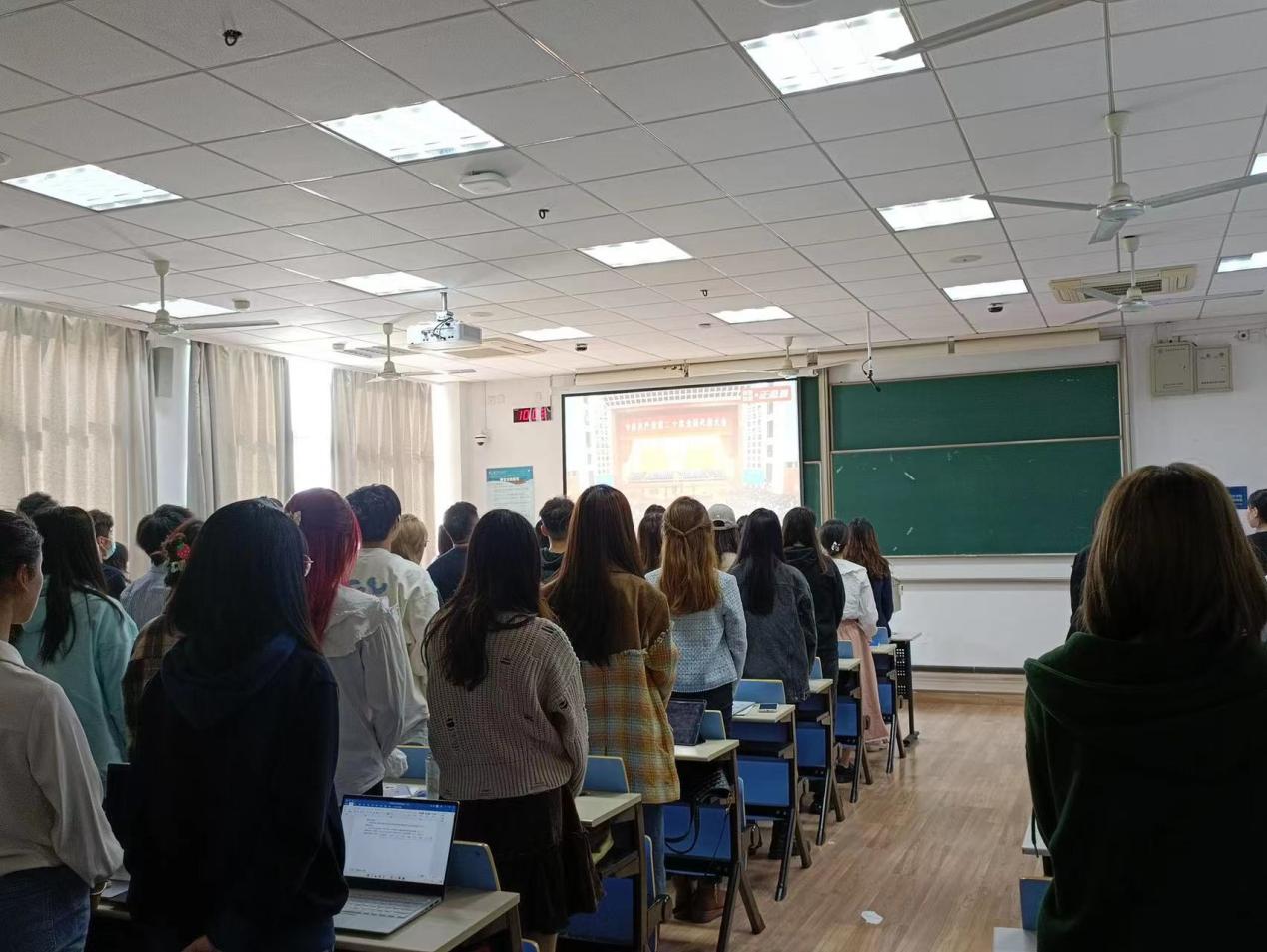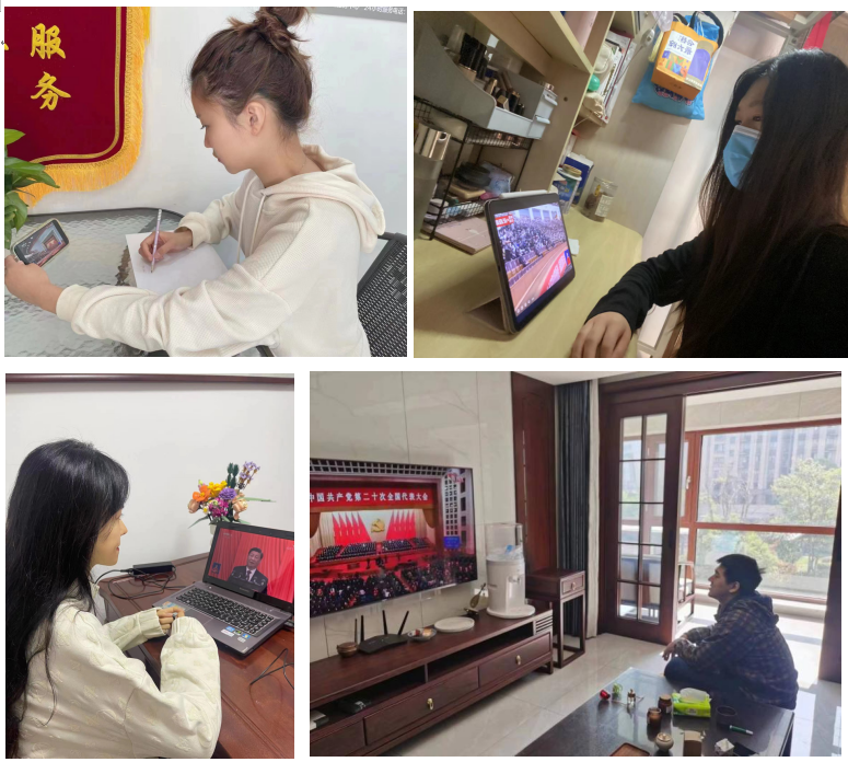 学生党员、入党积极分子和班团学生骨干在东区教学楼D1312、D1310教室线下集中收看,并充分发挥党支部、团学组织的带头示范作用,组织同学们在寝室内通过学习强国APP、新华社直播等渠道进行线上集中学习观看。