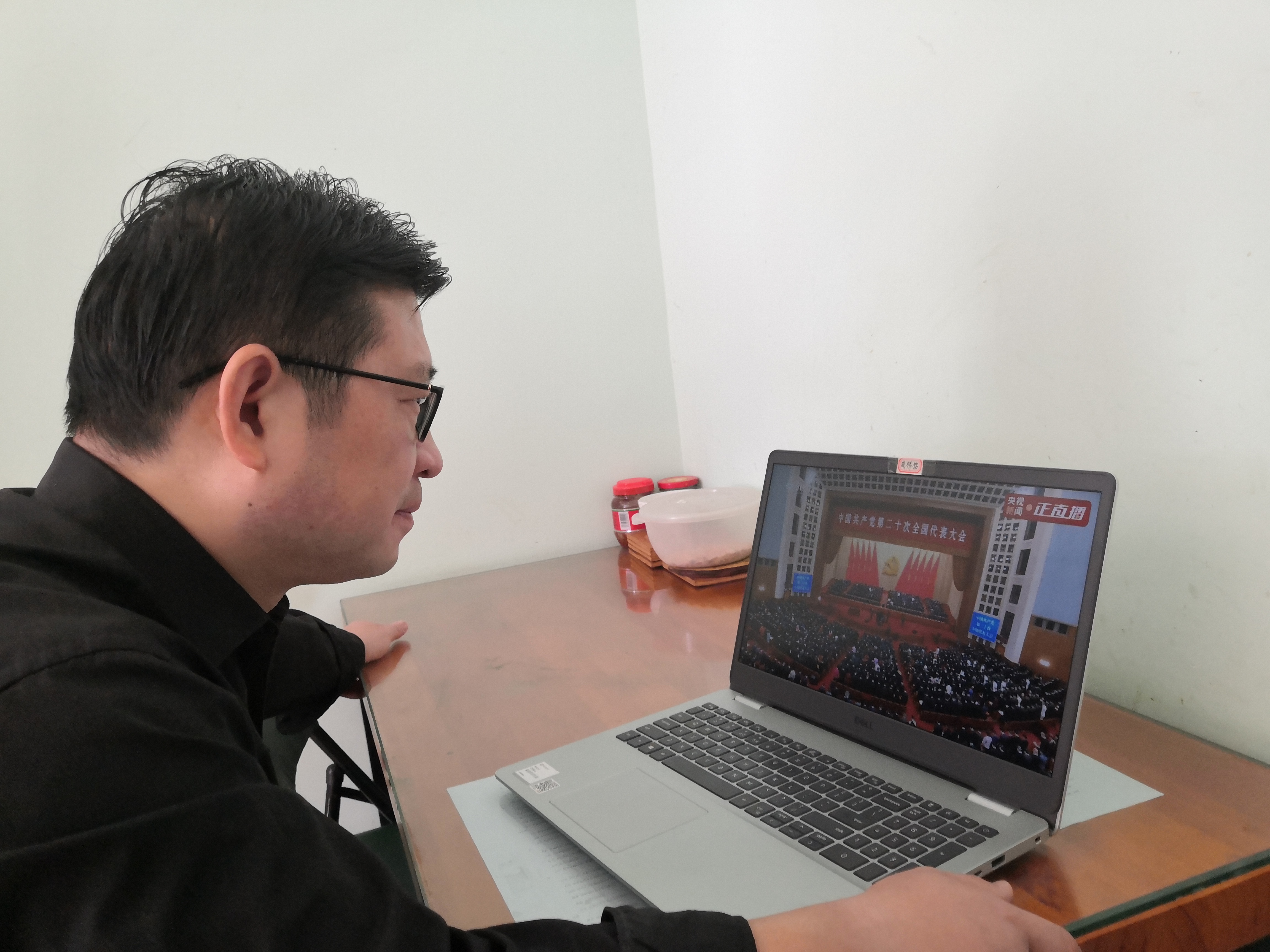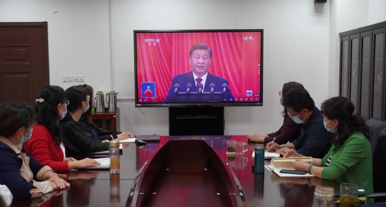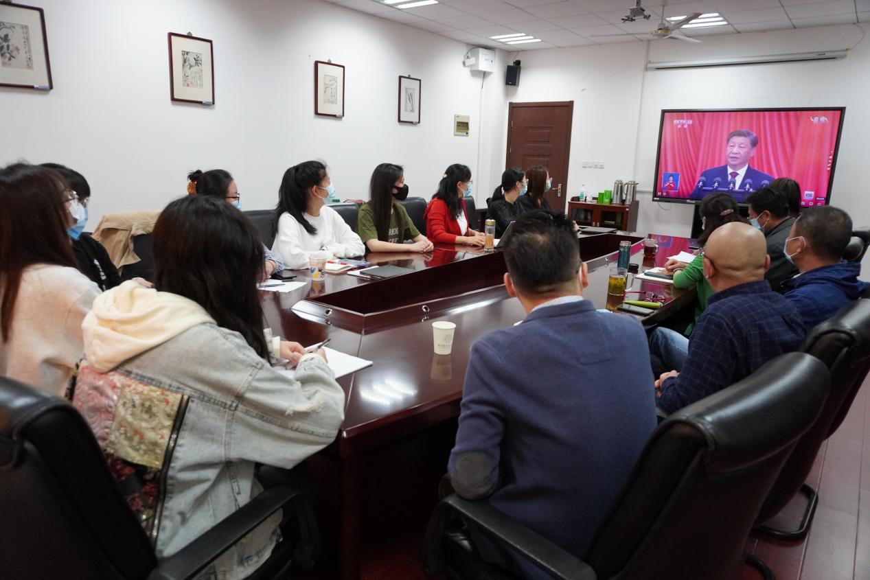 学院党委理论学习中心组全体成员、教工党支部书记、学生党支部书记、师生党员代表在学院325会议室共同收看开幕盛况。许多教师通过电视、电脑、手机等平台进行收听收看。