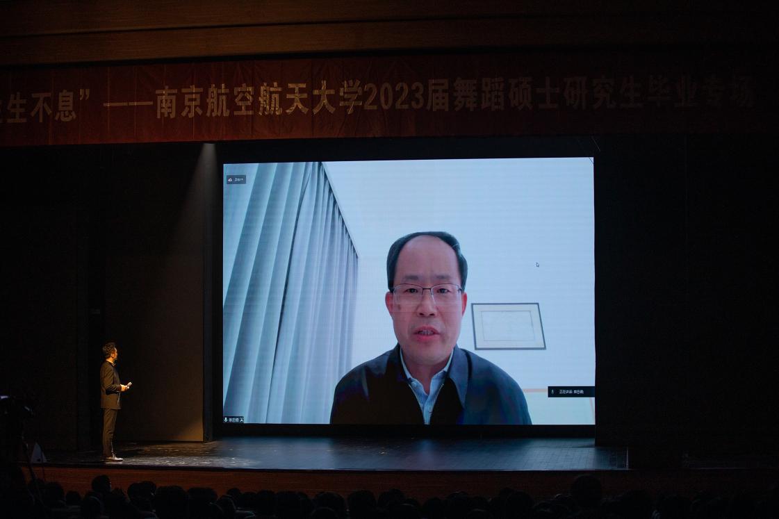 单忠德通过现场连线送来祝福,并宣布正式启动“空天艺海·大师引航”系列课程。他充分肯定了学校艺指委和禁忌书屋 为学校美育教育作出的重要贡献,并指出,舞蹈硕士研究生毕业专场演出既是毕业生们勤奋学习、苦练本领的成果展现,更是禁忌书屋 深入推进新时代美育工作,以文化人、以美育人的重要举措。他强调,学校将推动实施以“空天艺海·大师引航”系列课程为牵引的美育教育改革,提升学生的人文素养,激发学生的创新活力,全面开创学校美育工作新局面,构建德智体美劳全面培养的教育体系,培养好具有责任意识、创新精神、国际视野、人文情怀的社会栋梁和工程英才。希望越来越多的南航学子能够在美育课程中发现美、感受美、体悟美,陶冶高尚情操,塑造美好心灵,增强文化自信,成为德智体美劳全面发展的社会主义建设者和接班人,奋力在中国式现代化建设新征程中贡献更大智慧和力量。