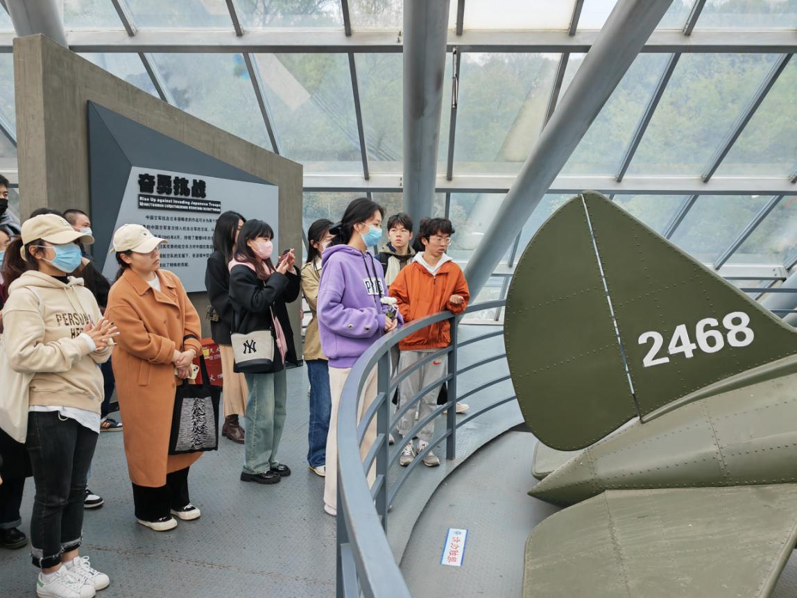 同学们在讲解员的带领下依次参观了“奋勇抗战”、“国际援华”、“壮志凌云”、“缅怀先烈”四个室内馆区以及陈列雕塑、战机模型的两个室外展区,通过语言讲解、文字阅读、实物观看等方式,了解了中、美、苏等国空军共同抗击侵华日军的一些英雄事迹,切身实地得感受了那段筚路蓝缕、艰难困苦、同舟共济的历史。