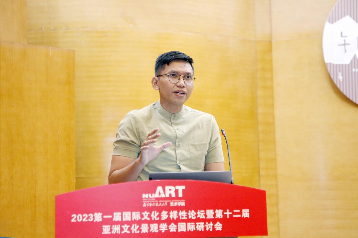 宣素那他皇家大学建筑学院副院长Pipat Saksirikasemkul教授作了题为“解读泰国下中部果园的文化和景观意义”的主旨报告,他通过文献回顾和实地考察,以定性方法描述了古德寺的Wat Kut Bangkem壁画的文化景观意义。强调景观和工匠的融合。最后,他提出这项研究可以发展并运用到更广泛的文化景观设计中,以更深层次的技术建造方法,了解中下层的文化景观意义。