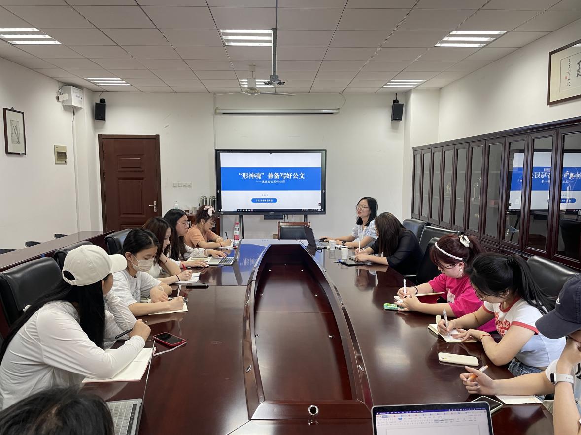 李西娟以“‘形神魂’兼备写好公文”为主题,分两个部分交流公文写作心得。首先她以个人经历说明公文写作能力是她职业道路上的一块敲门砖,回答“为什么要写?”的问题,并强调文章写作是一种思考工作、推动工作、总结工作、体现工作的试金石,对于青年骨干来讲,要不断磨练开口能讲、提笔能写、问策能对、遇事能行的硬本领。