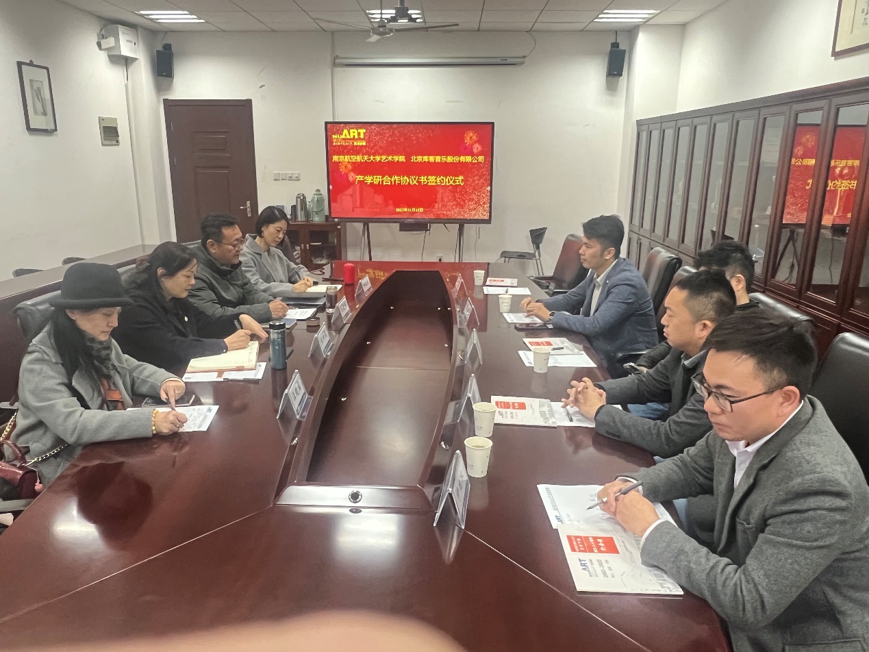 党委书记张钟勤、院长板俊荣、音乐系党支部书记汪晓露和孙晓烨副研究员,北京库客音乐文化总经理陶安临、副总兼技术总监马雄彪、大区商务总监冯成成、南京总经理李伟和市场总监仲兆权出席签约仪式。