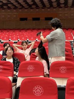 学生的每个神情、反应、情绪总逃不过杨老师的眼睛。她一边协调替补同学维持排练整体进度,一边拉着韩悦给她加油打气用最激昂振奋的声音传递着力量。“我们南航人在无数次的攻坚克难中创造了一个又一个传奇和突破,骨子里就有不服输、不、难的劲。我们演的是南航的莘莘学子,要用行动展现南航人的这份坚持与执着,告诉他们我们一定行,这是属于南航的‘最强音’!”
