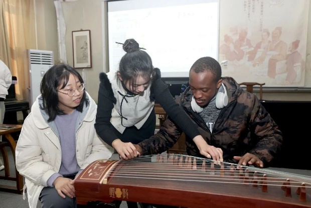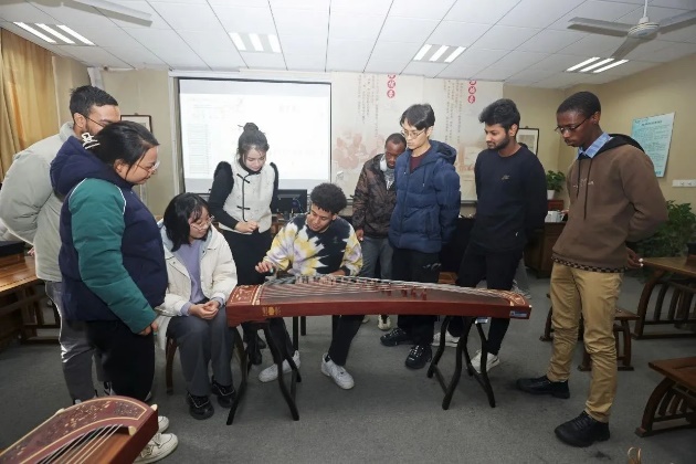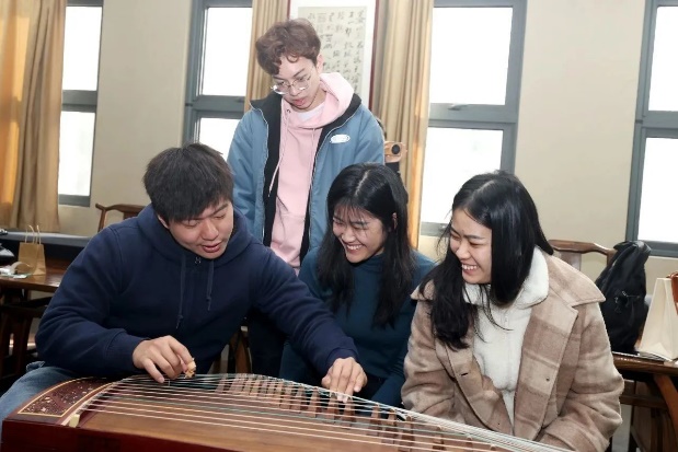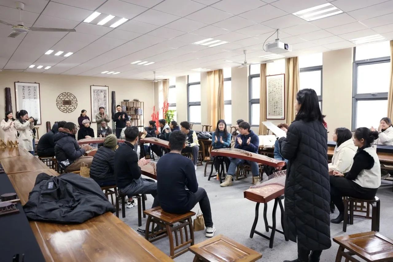 为庆祝即将到来的元旦佳节,潘老师带领大家学习用古筝演奏《新年好》,同学们在欢声笑语中共同完成了曲目的弹奏练习。