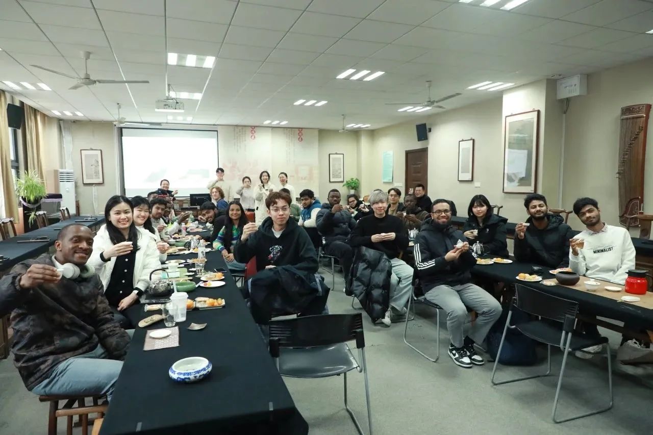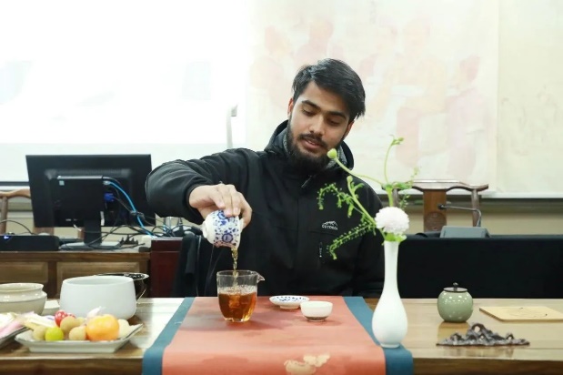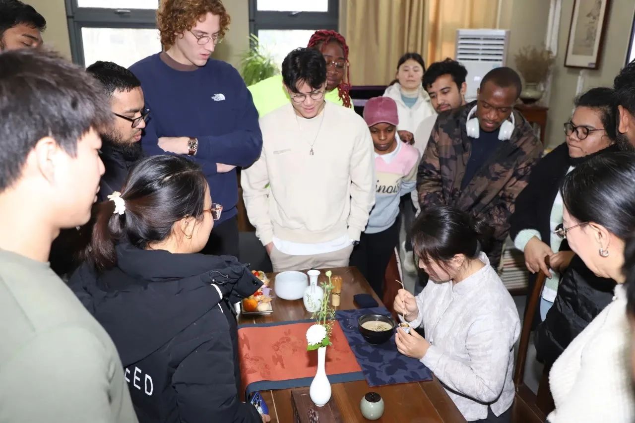 理论知识讲解结束后,余辉老师现场为留学生们表演宋代点茶并邀请同学们亲身体验。