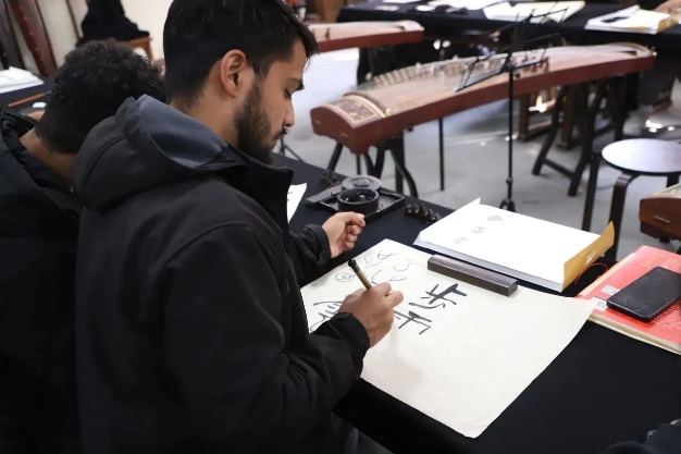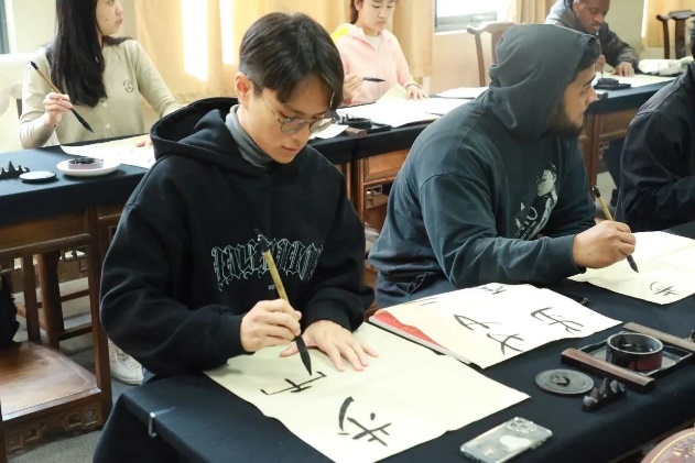 训练营第一讲为书法课,由禁忌书屋 杰出院友、砚湖书院书法教师张星星进行现场授课。张老师从书法的历史开始讲起,向留学生们传达:“中国书法,是中国汉字特有的一种传统艺术。”