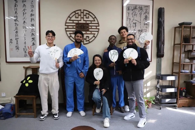 最后,同学们互相分享着自己的绘画作品,畅谈感悟心得。手持扇面,仿佛穿越时空,感受着中国画在几千年历史长河中的脉络发展。