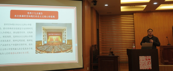 公开课上,唐志文回溯了中国共产党对中华优秀传统文化的认知与继承、创新与发展,强调了马克思主义进入中国以后一直与中国实际紧密结合、与中华优秀传统文化同向同行,着重分析了中华优秀传统文化与社会主义核心价值观之间的联系。他引导同学们更加系统地认识“两个结合”的深刻意义,鼓励同学们要把中华优秀传统文化的继承发展与社会主义核心价值观的践行有机结合,在文化传承与实践中实现人生价值。