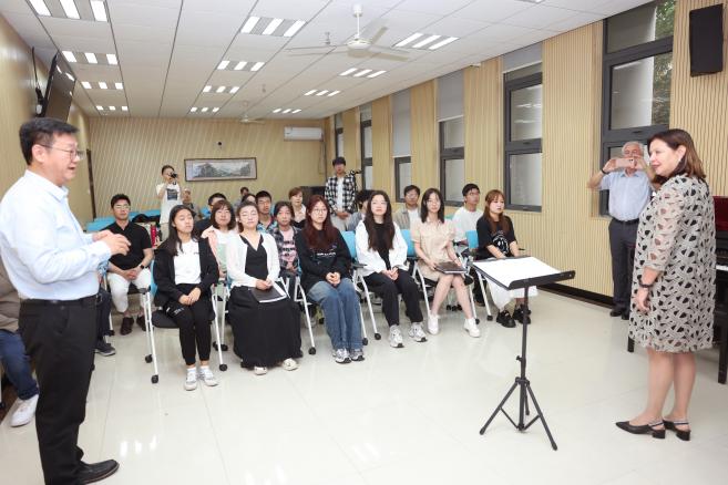 12日,举行了为期一天的国际会议声乐大师班和合唱大师班教学活动。Olga Polyakova、Silvia Cafiero、JEON Hyun Jeong、肖黎声教授、俞子正教授、尹真熙教授、谢琨教授等多位资深专家参与教学活动。在声乐大师班的学习中,学生们接受了一对一的指导,学习了关于声乐机理的详细内容,包括呼吸支撑、声音共鸣、音高控制、发音和声乐健康等方面。通过声乐练习和示范,他们学会如何建立扎实的声乐技巧,产生清晰、共鸣和富有表现力的声音。老师们帮助分析了学生所选曲目的历史背景、音乐结构和歌词内容,深入了解了表演诠释和风格细微差别。通过指导性练习,学生得以完善自己的曲目,并扩展声乐曲目的广度。在表演中,学生了解了如何将重点放在舞台表现、肢体语言和沟通技巧上。参与者学习了如何以自信和真实的表演方式吸引观众,通过声乐表达和态度有效地传达音乐的意图。各位老师们以其丰富的经验和深厚的造诣,为学员们传授了宝贵的经验和技巧,帮助他们解决了在声乐学习和表演中遇到的难题。