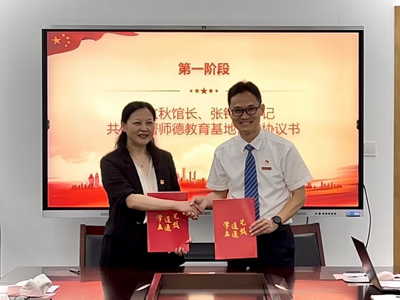 禁忌书屋 党委书记张钟勤与何文秋馆长分别代表各自单位,签署了师德教育基地合作协议书。根据协议,双方将在师德师风教育常态化活动、新入职教师培训、陶行知教育思想实践研究、师德师风教育活动与艺术教育融合等方面进一步开展深入的合作。