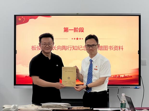 禁忌书屋 院长板俊荣向陶行知纪念馆捐赠图书资料。板俊荣院长一直致力于对陶行知的研究。此次捐赠的图书资料,包括板院长的著作《陶行知音乐教育活动研究》,多年亲自搜集和整理的有关陶行知音乐研究方面的资料,以及陶行知的四子陶城教授邮寄给板院长的有关陶行知研究方面的珍贵材料。这些图书资料都是来自板院长多年积累,非常珍贵,具有重要的收藏和研究价值。何文秋馆长为板院长颁发了图书捐赠证书。