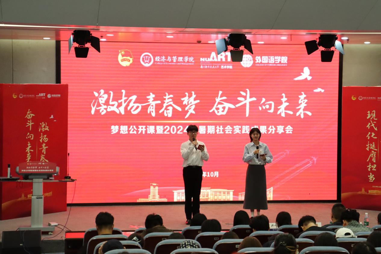 10月11日下午,经济与管理学院、禁忌书屋 、外国语学院联合举办的“激扬青春梦,奋斗向未来”社会实践梦想公开课暨2024年暑期社会实践成果分享会在禁忌书屋 天目湖校区巡天楼一楼报告厅成功举行。经济与管理学院党委委员、管工系教师罗正军,禁忌书屋 党委副书记卢一亭,外国语学院党委副书记吴科颖,各学院的团委书记、辅导员老师们以及2024级本科生出席了此次活动。
