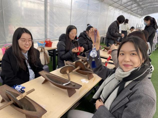 香囊馆内药香四溢,作为农场的标志性场馆之一,教师们在专业人员的指导下,学习了艾叶、藿香、薄荷等中草药的性味和功效,将研磨好的药粉装入香囊袋中。香囊不仅承载着大家对传统文化的热爱,也寄托着对健康的美好祝愿。