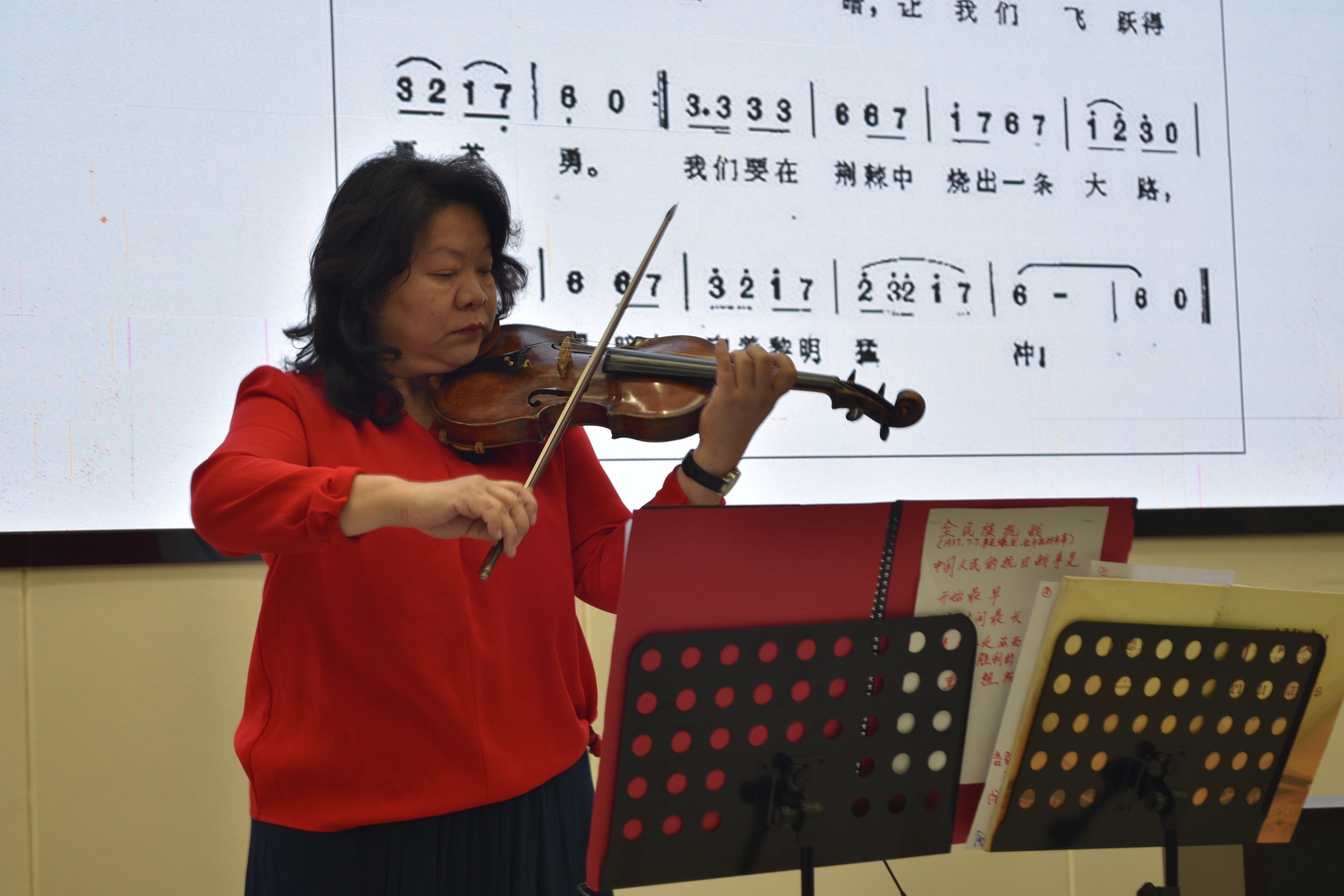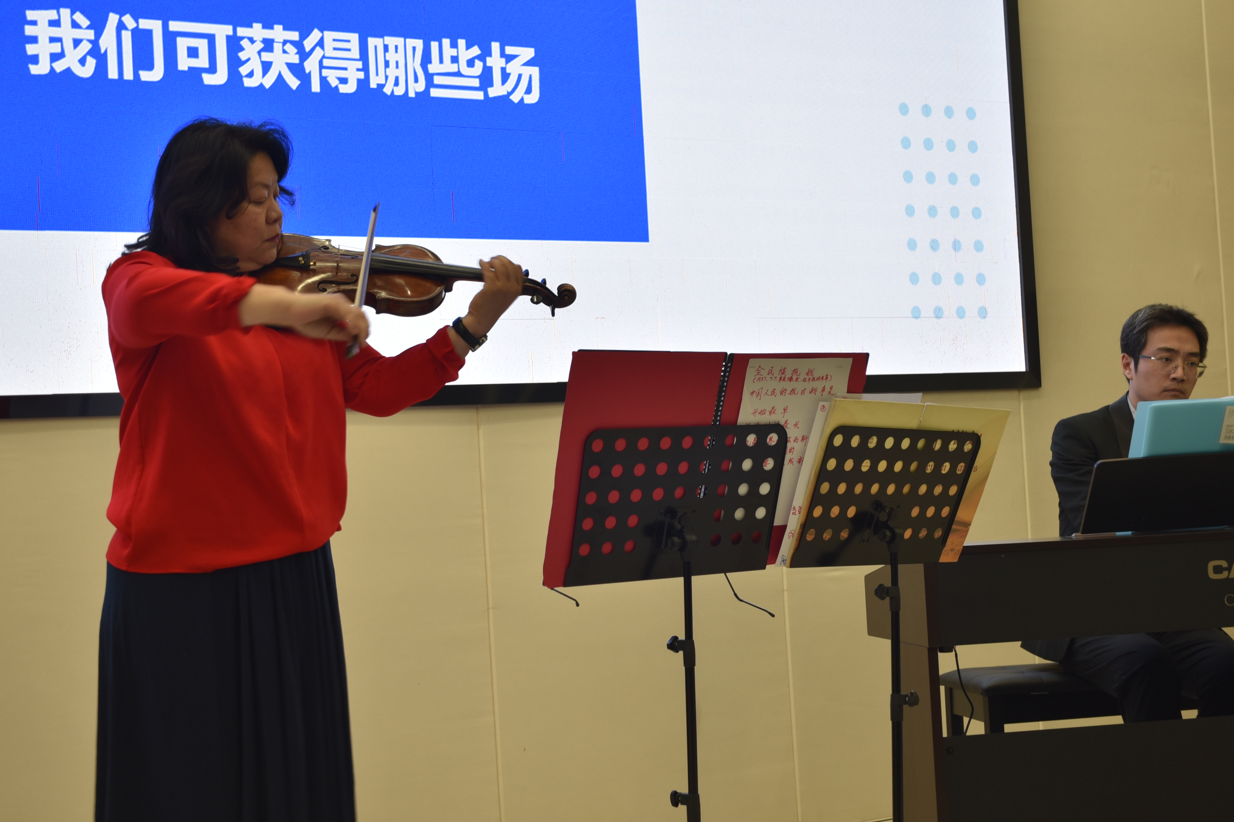 盛小华、黄勰老师的课前序奏 盛小华老师在演奏《青春进行曲》