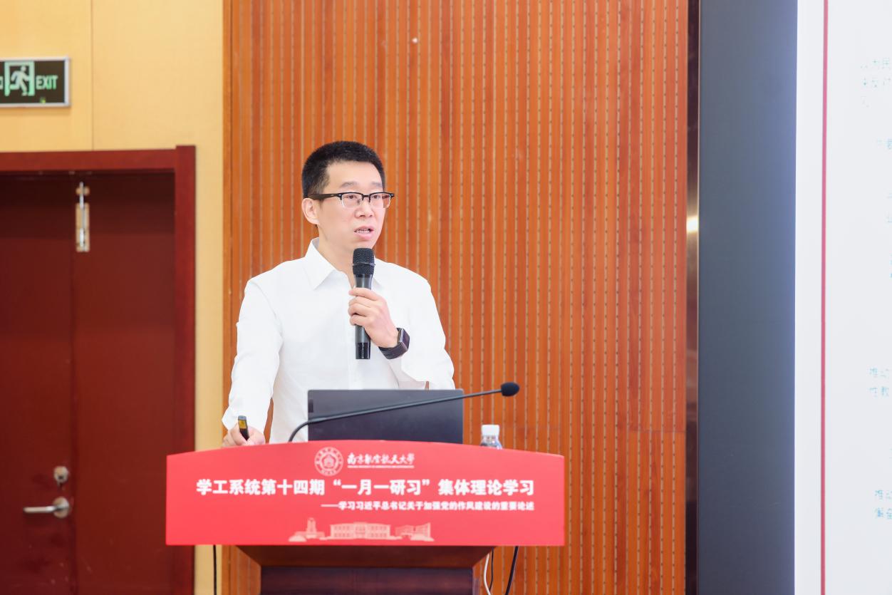 会议最后,刘宇雷分享了学习习近平总书记关于加强党的作风建设的重要论述的思考和体会。他指出,作为学校学生日常思想政治教育和管理工作的组织者、实施者、指导者,学生工作人员理应以作风建设新成效推动保持党的先进性和纯洁性,进一步筑牢守好思想政治阵地和意识形态阵地,营造风清气正、向善向上的育人生态,努力实现培根铸魂育新人的工作目标。他从三个方面提出具体要求:一是提高政治站位,深化思想认识,切实增强开展学习教育的政治自觉;二是对标目标要求,把握工作安排,高质量落实学查改各项重点任务;三是坚持问题导向,把握方法规律,深化作风建设务求工作取得实效。他强调,加强党性修养要一以贯之,不断在自我修炼、自我约束、自我改造中检视、砥砺和提高,保持永不变色的党员本色和始终如一的育人初心。