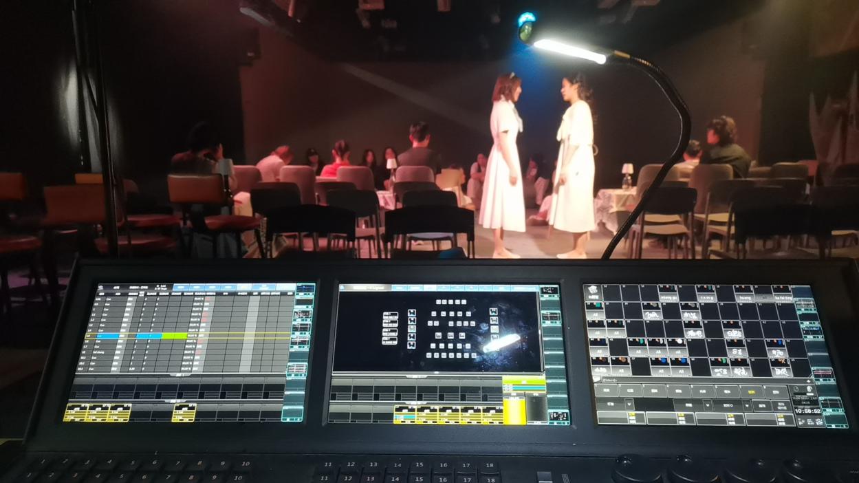 此次毕业展演与南航禁忌书屋 戏剧影视美术设计专业开展深入合作,通过《戏剧影视灯光设计》《人物造型设计》《虚拟空间设计》等课程,开展跨学科融合。南航禁忌书屋 的学生运用AI技术进行舞美设计,利用文本生成模型快速构建场景概念草图,通过CAVE空间多通道视景同步技术以及舞台光影技术,实现规定情景的虚拟场景重建和舞台场景的实时动态切换,使观众能够沉浸式观演。南航2022级戏剧影视美术设计专业学生刘泰源是本次剧目的多媒体设计/执行灯光,他提到,在技术上最大的难度在于,AI的能力并没有想象中的那么强大,至少在视频成形方面,需要投入大量时间对AI生成的内容进行反复优化和调整。创作团队面对问题时也不断进行改进,直至呈现出满意的舞台效果。