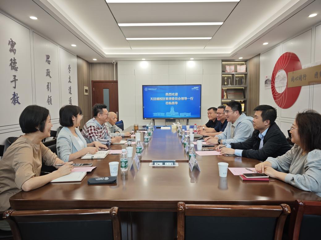 5月9日,天目湖校区管理委员会主任缪长宗,副主任潘顺荣、于晓,党政办公室主任寇晓洁,项目管理办公室主任马丽佳、党政办公室科员严敏豪一行来院调研交流。学院院长板俊荣,党委副书记卢一亭,副院长马道全、朱琰等参加交流。