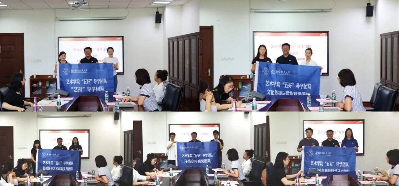 院长板俊荣为五个成功立项的导学团队授旗,并表示一面旗帜,一份责任,愿各团队扛起使命担当,以旗帜为号角,在育人实践中勇攀高峰。
