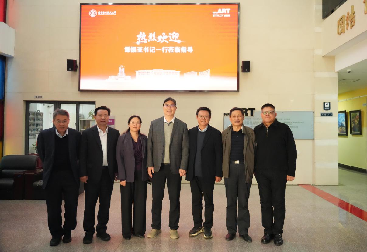在舞美工场实验室,谭振亚书记细致观看了学生的舞台设计作品,并沉浸式体验了虚拟仿真平台带来的震撼舞台效果。随后走进砚湖书院,谭书记在一幅幅师生书画作品前驻足欣赏,认真聆听了书院的发展历程与当前开设的多门特色课程。其间,板俊荣院长现场即兴演奏古琴,琴韵悠扬,营造出典雅和谐的艺术氛围,大家围绕音乐、书法与艺术创作等话题展开了轻松而深入的交流。